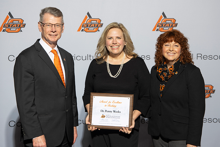 Penny Weeks, professor in the department of agricultural education, communications and leadership at Oklahoma State University, was recognized with the Award for Excellence in Teaching at this spring’s College of Agricultural Sciences and Natural Resources Scholarships and Awards Banquet.