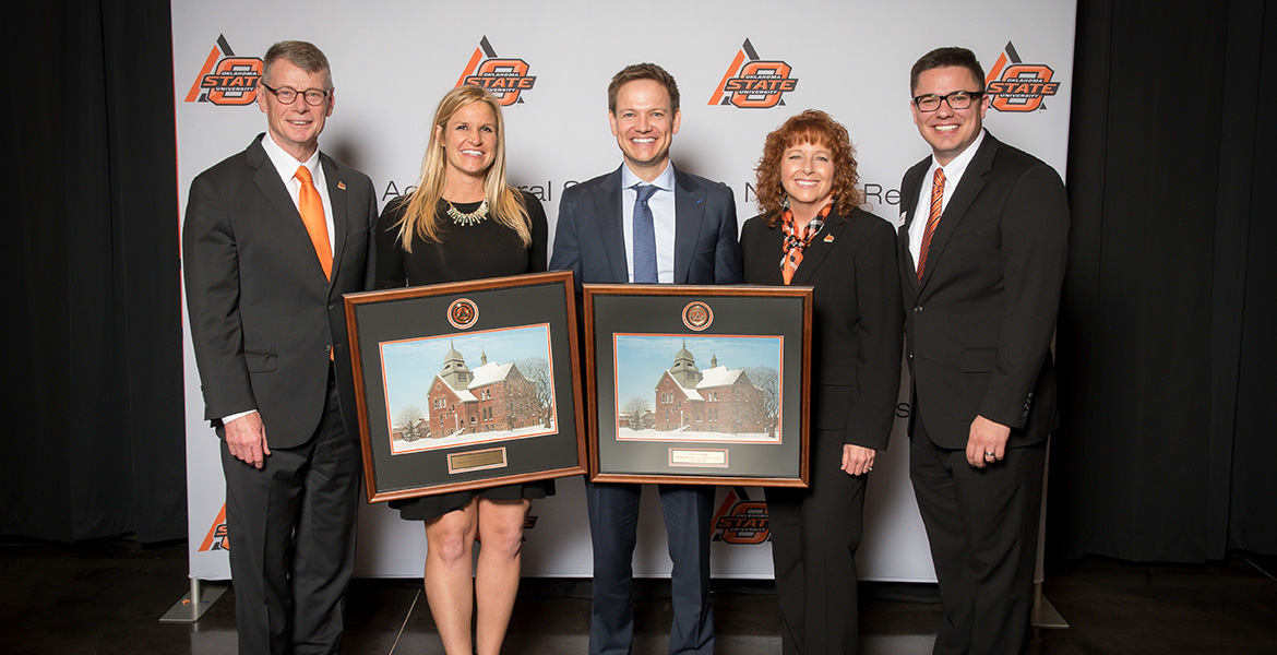 Oklahoma State University’s College of Agricultural Sciences and Natural Resources Alumni Board recently honored Trent McKnight of Throckmorton, Texas, and Bambi Sidwell of Goltry, Oklahoma, as the 2018 Early Career Achievement Award winners at the 2018 CASNR Scholarships and Awards Banquet.