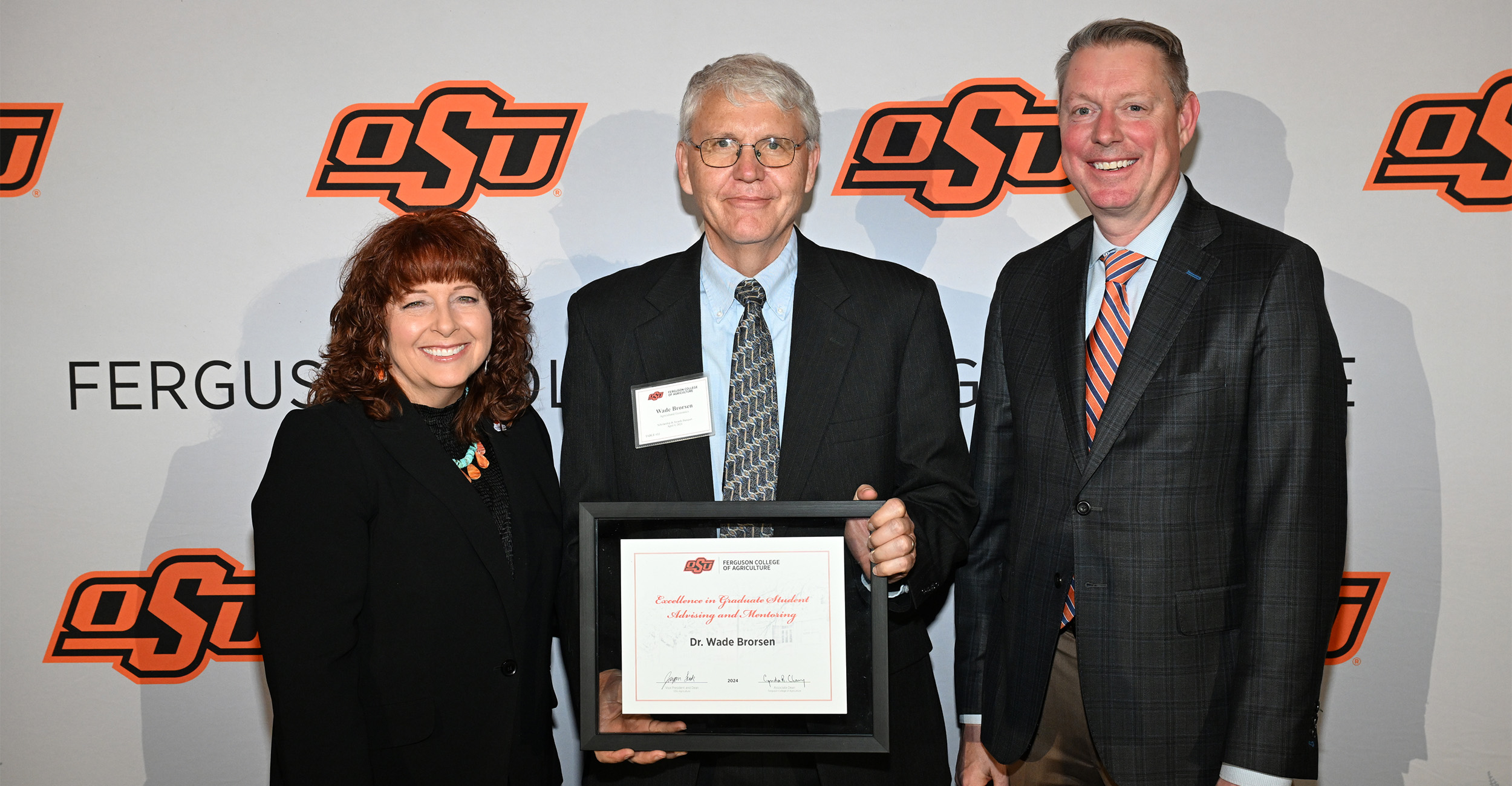 Dr. Wade Brorsen, a Regents Professor in the Oklahoma State University Department of Agricultural Economics, is the 2024 recipient of the Excellence in Graduate Student Advising and Mentoring Award. He was recognized at the annual Ferguson College of Agriculture Scholarships and Awards Banquet in April.