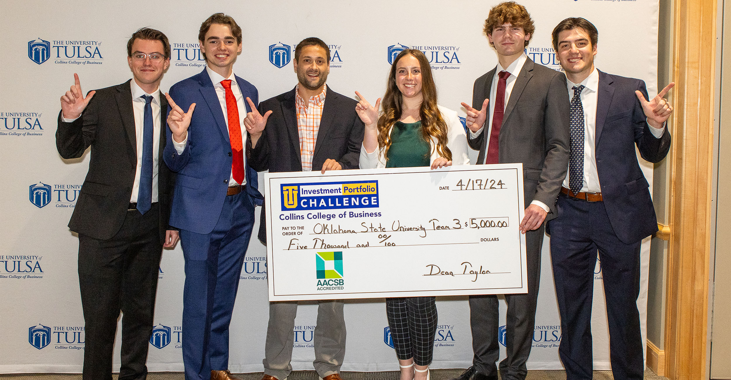 Two teams of students from the Spears School of Business’ student-managed investment fund (SMIF) class made the final competition round at the University of Tulsa’s Investment Portfolio Challenge on April 17.