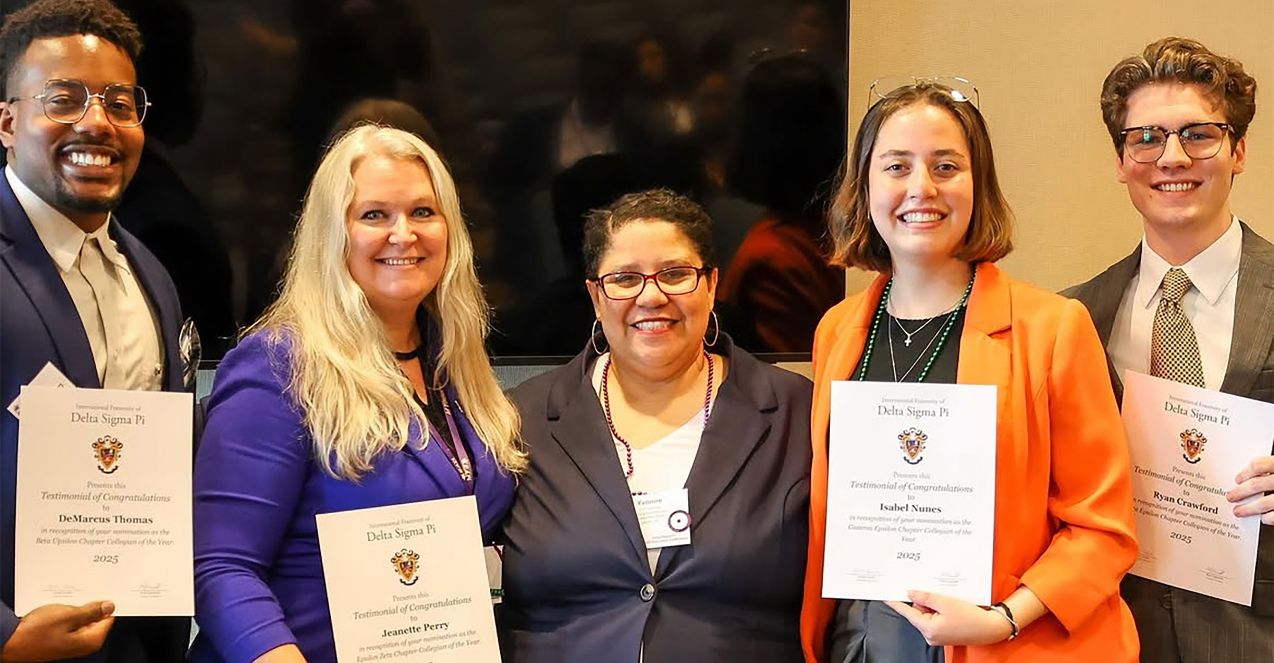 “Winning Regional Collegian of the Year is an honor and a reminder of how much Delta Sigma Pi has shaped me,” Nunes said. “Balancing work, school and leadership hasn’t always been easy, but this award proves that resilience and passion pay off. More than anything, it’s a testament to the incredible community and values that make our brotherhood so special. I am proud of my brothers, and I am proud to be a Delta Sigma Pi.”