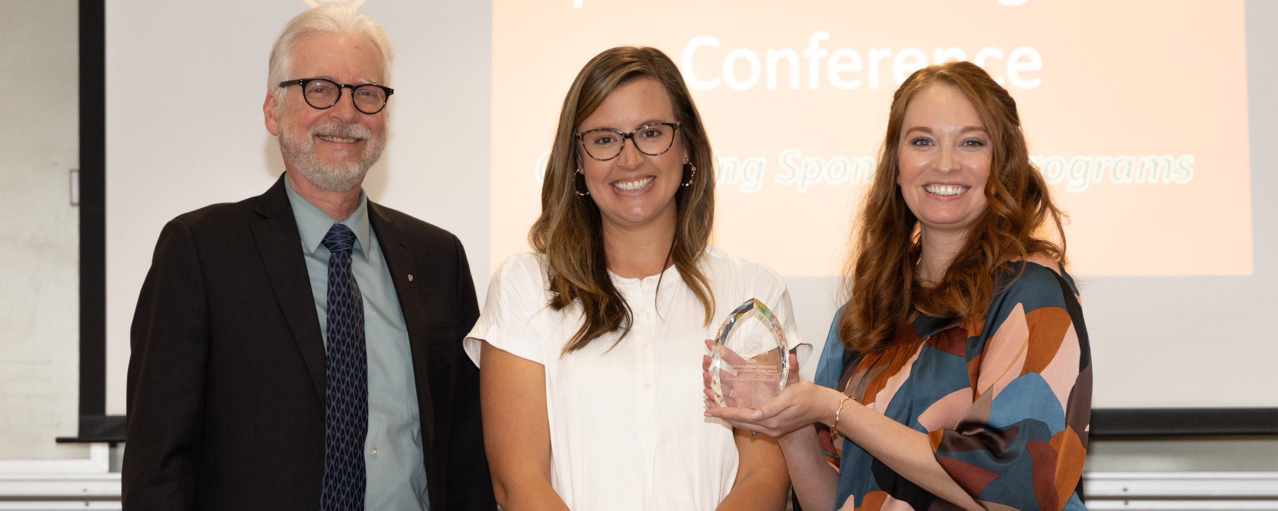 Jamie Westmoreland, associate director of sponsored programs in the College of Engineering, Architecture and Technology, received the 2023 OSU Sponsored Programs Service Award during the first OSU Sponsored Programs Conference.