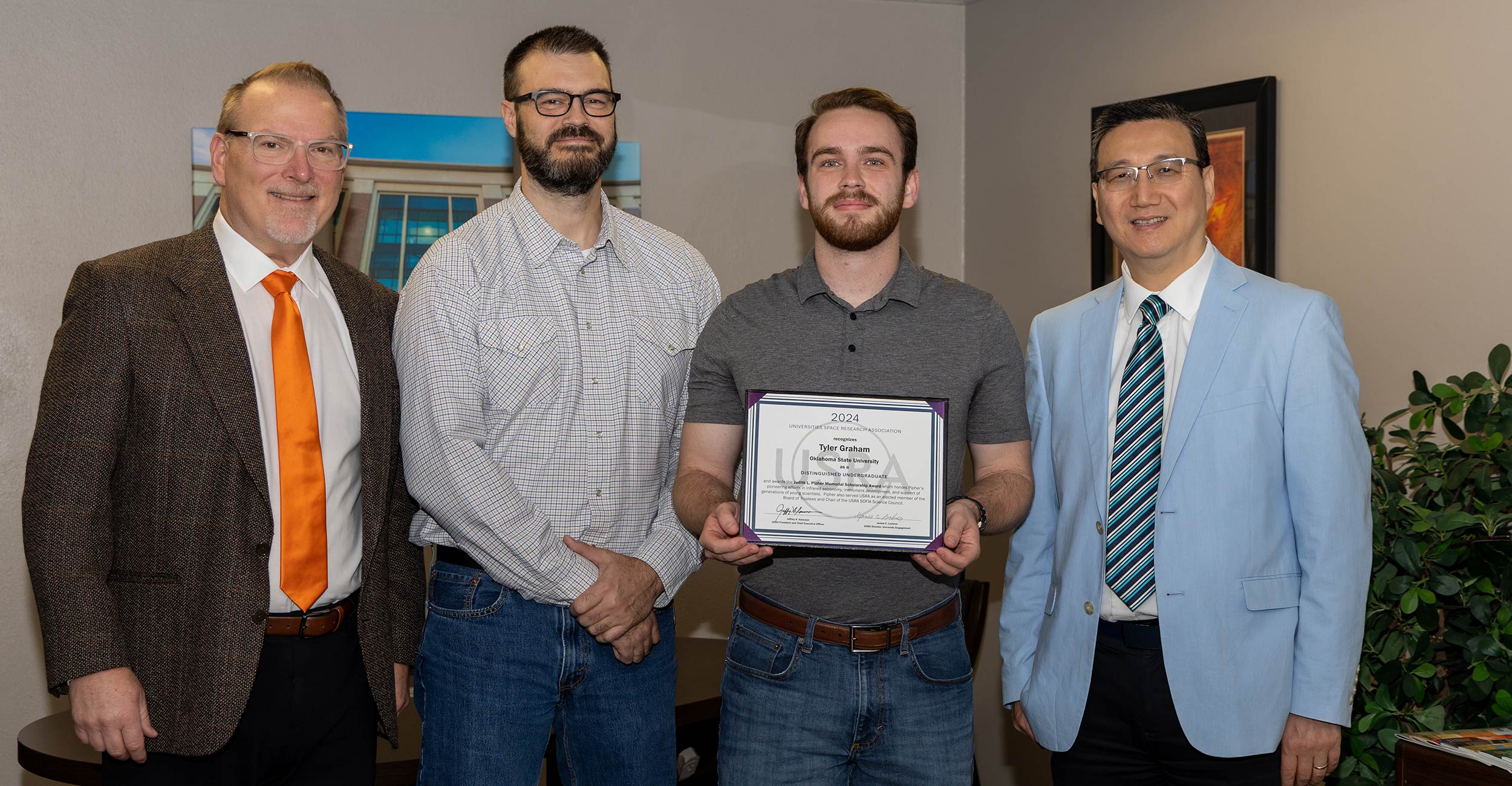 Graham’s remarkable achievements and passion for space research earned him the Judith L. Pipher Memorial Scholarship Award, the newest scholarship under the USRA Distinguished Undergraduate Awards. This honor recognizes Graham’s work with OKSat, Oklahoma’s CubeSat Launch Initiative, where he has focused on advancing infrared optical communication technology.