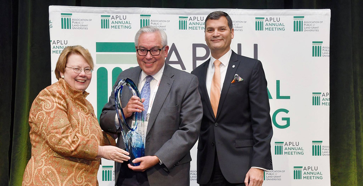 The Association of Public and Land-grant Universities (APLU) presented Oklahoma State University the C. Peter Magrath Community Engagement Scholarship, the organization’s national community engagement award for 2017. The College of Human Sciences leads OSU’s community engagement efforts and the prestigious honor recognizes a health collaborative between the college’s Department of Nutritional Sciences and the Chickasaw Nation.