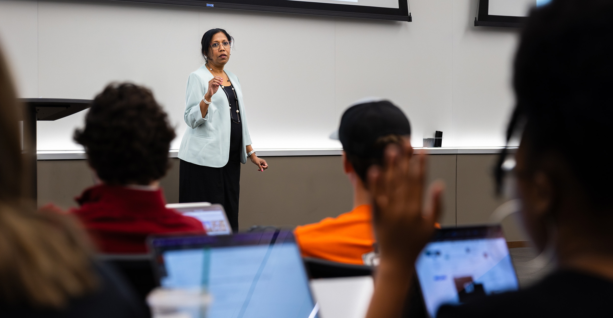 Most of the conversations around AI in the classroom are student-focused, but Sumathi is also exploring how faculty can use AI to handle the day-to-day tasks involved in teaching hundreds of students each semester. This would free professors to focus on strategic teaching and creating the personal connections that help students succeed.
